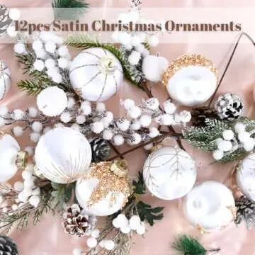 Elegant White Gold Satin Christmas Tree Ornaments - 12 Pack of 3.15" Decorative Balls for Luxury Holiday Decor