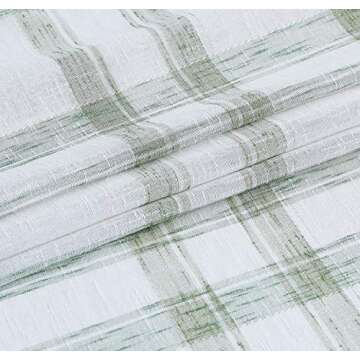 White Green Geometric Window Curtain Panel Pairs 84" Long for Living Room Linen Blend Semi Sheers Grommets Top Rustic Farmhouse Style Window Treatment Drape Sets for Bedroom 54"x84"x2, Sage/White