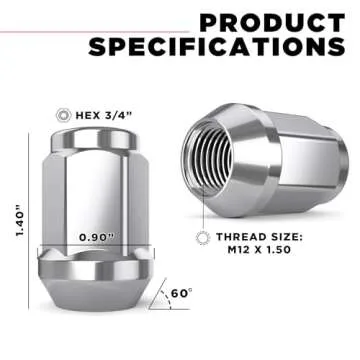 White Knight M12x1.50 Solid Piece Bulge Acorn Lug Nuts (NO Cap) for Select Aftermarket & Factory Wheels, EZ to Install, Durable Carbon Steel, Stylish Triple Layer Chrome Finish - 1907S-20AM (20 Pack)