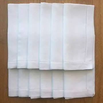 White Linen Hem Stitch Dinner Napkins - Set of 12 20"x20"-Ladder Hem Stitch 100% Linen Cloth Napkins-Super Value Bulk 12 Pack