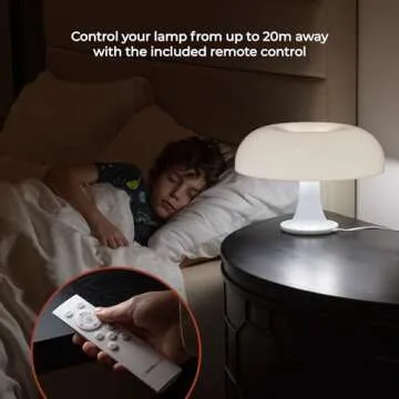 White Mushroom Lamp - Retro Nesso Table Lamp with Remote That Works Up to 65ft Away - Dimmable White Lamp - Mid-Century 70s Funky Lamp for Desk (White)