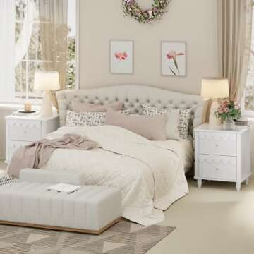 Show more Transform your bedroom into a haven of style and charm with this extraordinary nightstand, featuring an Exclusive Cloud-Inspired Design that elevates decor while providing functionality. Its unique scalloped drawer design not only captures the eye but also adds a delicate elegance reminiscent of soft, swirling clouds. The gourd-shaped feet and arc-shaped edges not only enhance safety for family members, particularly little ones, but also lend a contemporary flare to your space. This piece is more than just a piece of furniture; it embodies comfort and safety seamlessly.