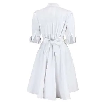 Show moreIntroducing the ultimate blend of style and practicality, the White Nurse Uniform Scrub Dress. Designed specifically for healthcare professionals, this dress combines a polished look with enhanced functionality. Its full circle skirt provides ample room for movement, while the chic high stiff collar and French cuff sleeves give you that smart, professional appearance. A convenient zipper on the side ensures easy wear, while the elastic waistband adds comfort for those long shifts. Plus, with a charming bow tie on the back and deep side pockets, you'll never have to compromise on style or utility during your workday.