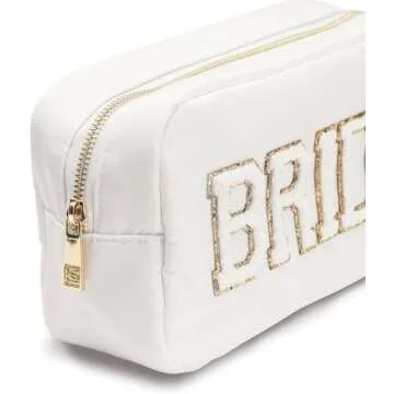 Show moreIntroducing the White Nylon Bride Pouch — the ultimate travel companion for brides-to-be. This elegantly designed makeup bag features charming embroidered letter patches that elevate its sophistication, making it the perfect engagement gift for any bride. Crafted from high-quality nylon, this bag is not just stylish but also incredibly durable, ensuring that it remains a beloved accessory long after the wedding day. Its ample space allows for organizing beauty essentials, from makeup to emergency items, ensuring you're beautifully prepared for your big day.