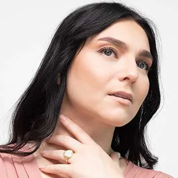 White Opal Adjustable Ring for Women in 14K Gold Plated Over 925 Sterling Silver – October Birthstone 0.55 inch Round Cut Gem14mm Housed in a Vintage Silver Mount - Handmade Jewelry - Boho Ring