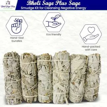 White Sage Sticks Pack of 6, Sage Smudge Kit 4'' Long Dried Sage Sticks for Meditation, Smudging and Cleansing, Getting Rid of Negative Energy, Sustainably Grown California Sage