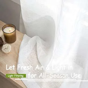 White Semi Sheer Curtains for Bedroom Living Room Linen Textured Window Treatment Set 63 inch Length Light Filtering Sheer Window Drapes for Kitchen Dining 52" w x 2 Panels Grommet Top