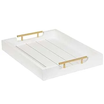 White Serving Tray with Gold Handles by Cozy Décor - Premium Decorative Trays - Coffee Table Trays for Living Room - Large Ottoman Tray -Tv Trays for Breakfast in Bed -17-Inch Wooden Tray for Ottoman