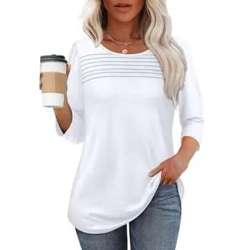 Show moreElevate your wardrobe with our stunning White Tops for Women with 3/4 Length Sleeves. Designed for comfort without compromising style, this blouse features an adorable pleated front design that adds a touch of elegance to your look. Made from a soft, stretchy fabric, this blouse is perfect for any season, particularly during the vibrant spring and warm summer months. The simple scooped neck gives it a classy finesse, while the curved hemline ensures you stay covered and chic, whether you're at work or enjoying a casual day out.