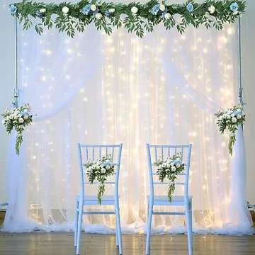 When compared to other backdrop solutions on the market, our White Tulle Backdrop Curtain with Lights holds several advantages. Unlike standard fabric backdrops, our sheer tulle offers a delicate transparency that enhances lighting effects, creating an engaging atmosphere. Additionally, while many competing products require complicated setups, our easy-hang rod pocket design and included clips streamline the process, saving you time and hassle. The included string lights also set our product apart by adding immediate ambiance that is often sold separately by competitors.