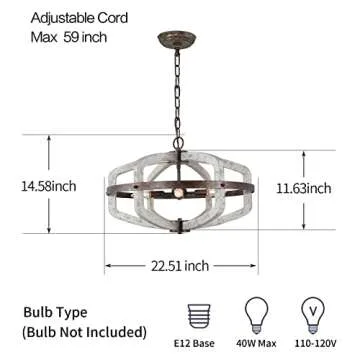 One of the standout features is its adjustable chain, allowing you to customize the hanging height based on your preference and the room's dimensions. Capable of accommodating 40-watt max E12 based bulbs, including LED, CFL, incandescent, and halogen bulbs, you can choose the perfect lighting to match your home's aesthetic. Note that bulbs are sold separately, giving you the freedom to select styles that suit your taste.