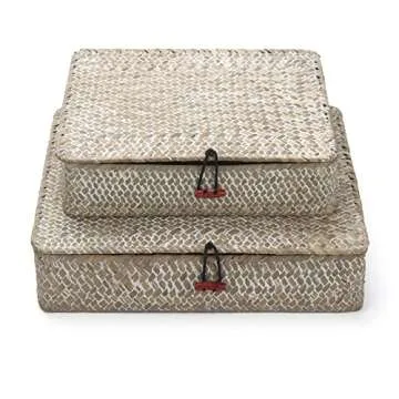 The natural color and artisan-crafted texture of these baskets make them suitable for any home or office decor, enhancing both functionality and aesthetics. They can be used as decorative accents or spatial organizers, ensuring your space remains clutter-free. With a lid included, you can effortlessly conceal the contents, providing a clean and polished look to your tabletop or shelf.