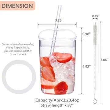 WHJY Glass Tumbler with Lid and Straw, Clear Travel Smoothie Cup,Heat Resistant Glass Outdoor Drinking Glasses, 16oz Glass To Go Cup with Lid and Straw