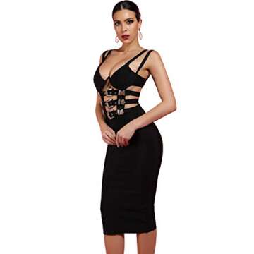 Whoinshop Women's Chic Cut Out Strappy Bodycon Bandage Party Midi Dress with Belt (XL, Black)