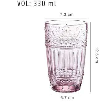 WHOLE HOUSEWARES Vintage Drinking Glasses - Set of 6 Embossed Water Glasses - 11oz Pink Glass Tumblers - Glassware Set for Water, Iced Tea, or Juice - Ideal for Weddings or Casual Dinner