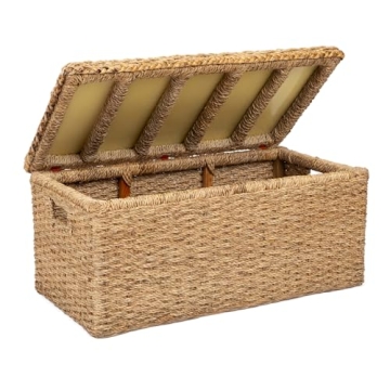 Wholestory Collective Handwoven Wicker 35" Banana Leaf Rattan Storage Trunk and Chest Seagrass XL Organizers with Lid, Natural Color with Handles