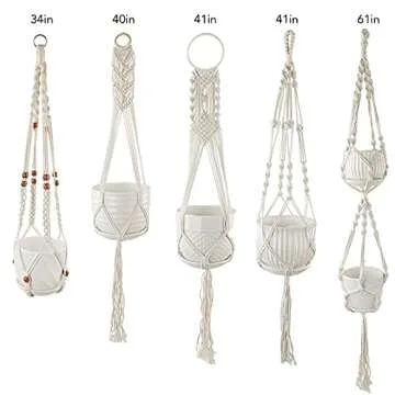 Whonline 5pcs Macrame Plant Hanger, Hanging Planters for Indoor Plants, Cotton Crochet Hanging Plant Holder for Boho Home Decor, Flower Pot with 5pcs Hooks 5 Sizes (34in-61in)