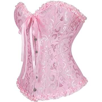 Stylish wiantoniollis Women's Lacing Corset Top - Versatile Satin Floral Bustier in Pink