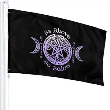 Show moreIntroducing the **Wicca As Above So Below 3x5 Ft Flag** – a stunning addition to your home decor, garden aesthetic, or outdoor setting. This flag is not just a decoration but a vibrant expression of a meaningful philosophy, beautifully dye-sublimated with captivating bold colors that will surely catch the eye of anyone who passes by. Crafted from **100% polyester fiber**, it boasts durability that withstands the elements, making it a stellar choice for both outdoor and indoor use. With quality stainless steel grommets and a polyester header, this flag is designed to be hassle-free, easy to install, and perfect for displaying your unique style.