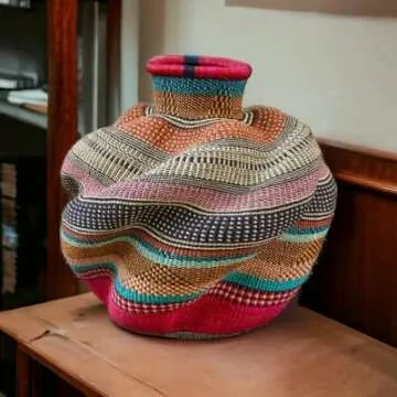 Wicker Round Basket,16x18 in,African Basket Decor,Rattan Basket Pot for Plants,Storage Large Basket,Bolga Basket (Small)