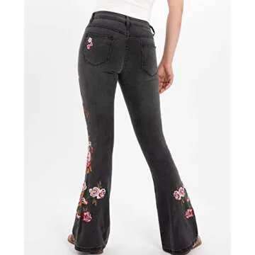 Flared Wide Leg Jeans with Floral Embroidery - Comfy & Stylish