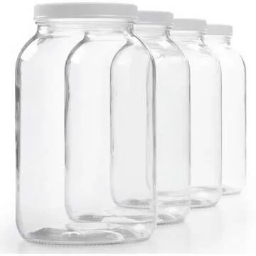 Wide Mouth 1 Gallon Glass Jar with Lid - Glass Gallon Jar for Kombucha & Sun Tea Gallon Mason Jars are Large Glass Jars with Lids 1 Gallon for Food Storage - 4pk Large Jars with Airtight Plastic Lids