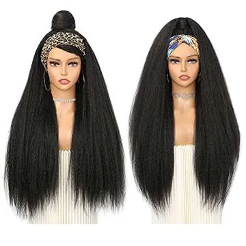 WIGNEE 26 Inches Kinky Straight Headband Wig for Women Yaki Straight Wigs with Black Headband Kinky Afro Wigs For Black Women