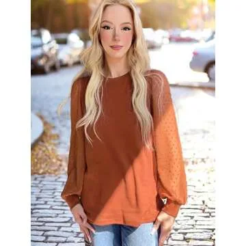 Show moreIntroducing the WIHOLL Long Sleeve Shirt for Women, a must-have addition to your fall wardrobe that effortlessly blends comfort with style and sophistication. Crafted from a luxurious fabric mix of 60% Polyester, 35% Rayon, and 5% Spandex, this shirt features a soft and breathable texture, ensuring you stay comfortable from morning to night. The standout detail of this shirt is its beautiful swiss dot embellishment on the see-through puff sleeves, adding a unique and fashionable twist to the classic long sleeve design. Perfectly tailored to flatter your figure, this shirt combines casual and dressy elements, making it ideal for both work and play.