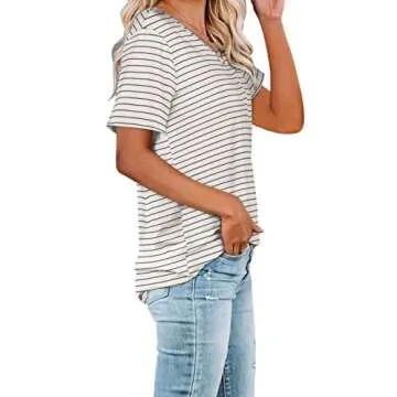 WIHOLL T Shirts for Women Short Sleeve Black and White Striped Tunic Tops S