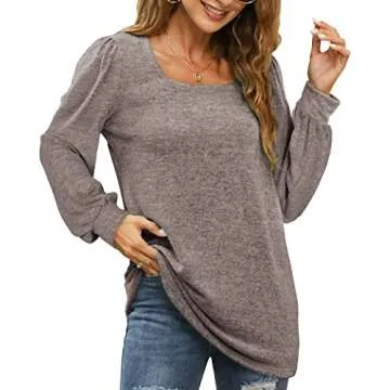 WIHOLL Tunic Tops for Women Loose Fit Long Sleeve Shirts Square Neck Tops