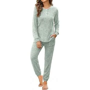 Show moreIntroducing the **WIHOLL Two Piece Outfits for Women**, an ideal combination of style, comfort, and versatility. Designed for the modern woman, this loungewear set is crafted from a meticulously chosen blend of **70% Polyester, 25% Rayon, and 5% Spandex**, ensuring a soft, breathable fabric that you’ll want to wear all day long. The set features a stylish **button-down top** with a classic V-neck design paired with **high-waisted drawstring pants**, complete with functional pockets to keep your essentials close. Available in a beautiful **sage green** color, this sweatsuit is perfect for any casual occasion – be it lounging at home or a quick run to the store. The relaxed fit adapts comfortably to your body, providing a flattering silhouette that looks as good as it feels.