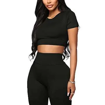 WIHOLL Two Piece Outfits for Women Short Sleeve Crop Tops and High Waist Shorts Sets