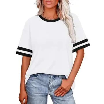 Show more Introducing the **WIHOLL Women's Summer Tops**, the ultimate blend of comfort and style that every woman needs in her wardrobe. Crafted from a soft, breathable mix of **60% Polyester, 35% Rayon, and 5% Spandex**, these half-sleeve, loose-fit tops promise an airy feel suitable for those warm summer days and beyond. Whether you’re lounging at home, running errands, or going out for a casual date night, this versatile piece fits seamlessly into any setting. The classic crew neck design and unique striped sleeve cuffs add a charming twist that sets these shirts apart from the ordinary. You’ll love reaching for this stylish shirt whether you're dressing up in jeans or keeping it casual with shorts.