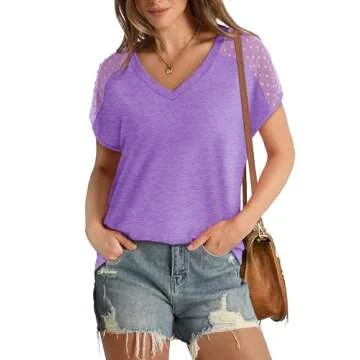 Show moreIntroducing the WIHOLL Women’s Trendy Short Sleeve V Neck T-Shirts—where comfort meets style in a delightful blend! Designed with an eye for fashion and a heart for comfort, these tops feature lightweight and soft fabric that embraces your skin, making them perfect for casual outings and everyday wear. With their elegant V-neck and sheer Swiss dot sleeves, these tees elevate your summer wardrobe while providing a relaxed fit that flatters any body shape.