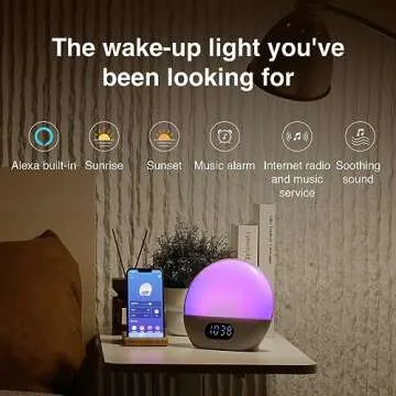 Show more Discover the transformative impact of the WiiM Wake-up Light, a revolutionary all-in-one device designed to redefine your bedside experience. With its unique blend of a smart speaker, sunrise alarm clock, and bedside reading light, this product is tailored to improve your sleep while ensuring you wake up refreshed and energized. The WiiM Wake-up Light stands out with its user-friendly controls, available via on-device buttons, the WiiM Light App, or voice commands through Alexa. Programming your daily routines and setting soothing audio alarms has never been easier, ensuring you can ease into your day seamlessly.