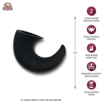 Wild Eats Water Buffalo Horn No Hide Dog Bones & Chews (All Natural Single Source Protein, Grain Free Treat, Long Lasting Dog Chews & Bones (2 Pack, Medium-Horn)