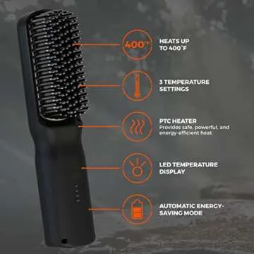 Wild Willies Beard Straightener for Men - 3 Temperature Settings, Tourmaline Ceramic Heated Beard Brush & Hot Comb - Portable, Ionic Technology, Coarse & Curly Hair, 400F - Grooming Tool