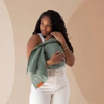 WildBird - Ring Sling Baby Carrier - Newborn to Up to 35 lbs - for Moms, Dads & Caregivers - 100% Natural European Linen Fibers - Versatile & Adjustable - 74” Size - Acadian Fabric & Black Ring