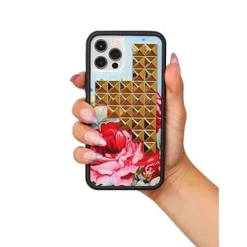 Wildflower Cases - Blue Floral with Gold Pyramid Case, Compatible with iPhone 12/12 Pro | Flowers, Pink, Gift, Cute, Trendy - Protective Bumper, 4ft Drop Test Certified, Women Owned Small Business