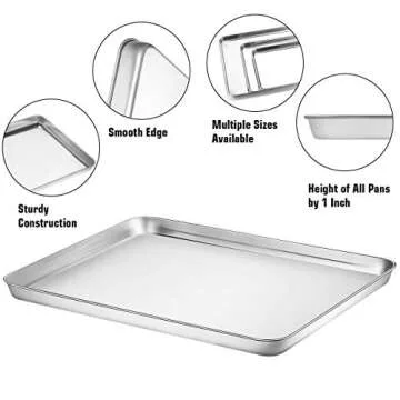 These baking sheets are made from heavy-duty stainless steel, designed for long-lasting use without warping.