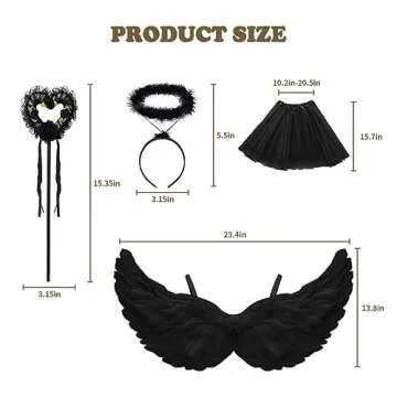 WILDPARTY Angel Costume Accessories for Women, Tulle Tutu Skirt, Angel Wings and Halo Wings and Halo White Angel Costume for Women Photo Shoot Prop, Halloween Costume (Black)