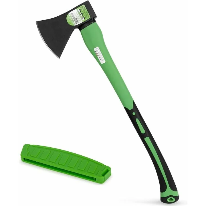 Crafted with a forged carbon steel heat-treated blade, the axe has improved density for increased durability and long-lasting sharpness. Unlike traditional axes, this tool delivers superior performance with each use. The ergonomic design includes a shock-absorbing anti-slip grip and a cold-resistant fiberglass handle, making it comfortable to use while reducing hand strain.