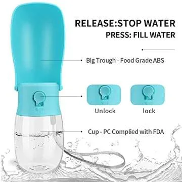 Show moreIntroducing the ultimate solution for pet hydration on the go, the WILIFDOM Dog Water Bottle. Designed with both functionality and convenience in mind, this innovative water bottle allows you to easily provide fresh water to your furry friends anytime and anywhere. Featuring a leak-proof design with a smart one-key lock and a high-quality sealing rubber ring, you can trust that this bottle will keep your belongings safe and dry without any spills or leaks. Say goodbye to messy bowls and wasted water; with just a press of a button, you can easily dispense water and save any unused portions back into the bottle for later use.