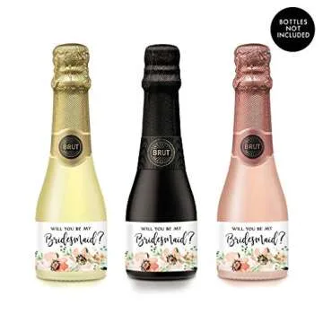 Will You Be My Bridesmaid? Set of 10 Mini Champagne Labels Bride Proposal Asking Sister, Best Friend, Favorite Ladies Maid Matron of Honor To Plan Wedding 3.5" x 1.75" Lovely Floral Mini Wine Sticker
