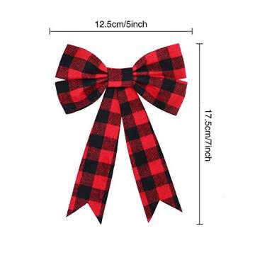 WILLBOND 20 Pieces Christmas Plaid Bows Buffalo Check Bows Holiday Decorative Bows for Xmas Tree Home Decor, 5 x 7 Inch (Red Black)