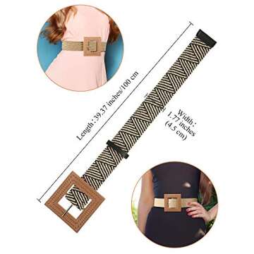 WILLBOND 3 Pcs Straw Woven Belt Boho Waist Belt Wooden Buckle for Women(Medium)