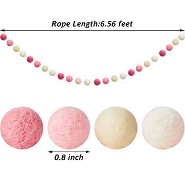 WILLBOND 3 Pieces Wool Felt Ball Garland Colorful Pom Pom 6.5 Ft Long 24 Ball Garland for Mardi Gras Halloween Thanksgiving Xmas Black History Month (Pink,Light Pink,Beige,White)