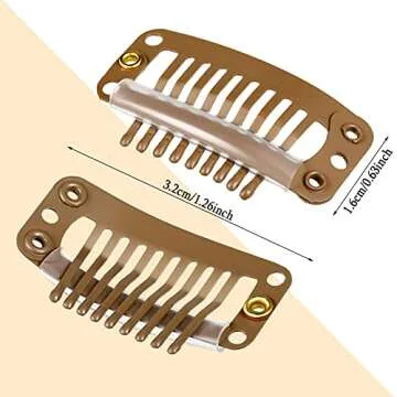 Show moreIntroducing the WILLBOND 30 Pieces 32 mm 9-teeth Hair Extension Clips, designed for the DIY enthusiast who loves to enhance their hairstyle with ease and comfort. Crafted from premium quality metal, these clips promise durability and resilience, ensuring they withstand the test of time without fading or deforming. Measuring at 3.2 x 1.6 cm (1.26 x 0.63 inches), these clips are ideal for most wigs and hairpieces, making them the perfect companion for your styling needs. Whether you're looking to add volume, length, or style to your hair, these clips are designed to provide a reliable and satisfying experience.