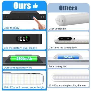 WILLED 5W Dimmable Mirror Lights,3 Colors Adjustable Makeup Light with 120 LED,2500mAh Rechargeable Under Cabinet Led,Stick on Touch Light,Magnetic Wall Light for Cabinet,Kitchen,Closet,Bedside,Desk