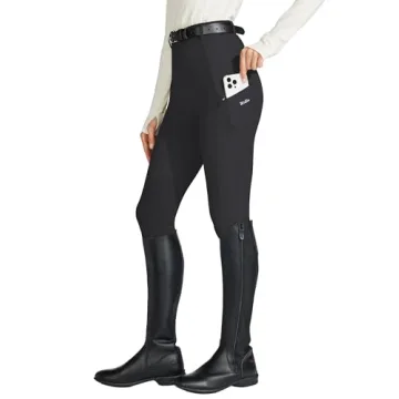 Willit Women's Knee-Patch Horse Riding Breeches with Zipper Pockets in Black